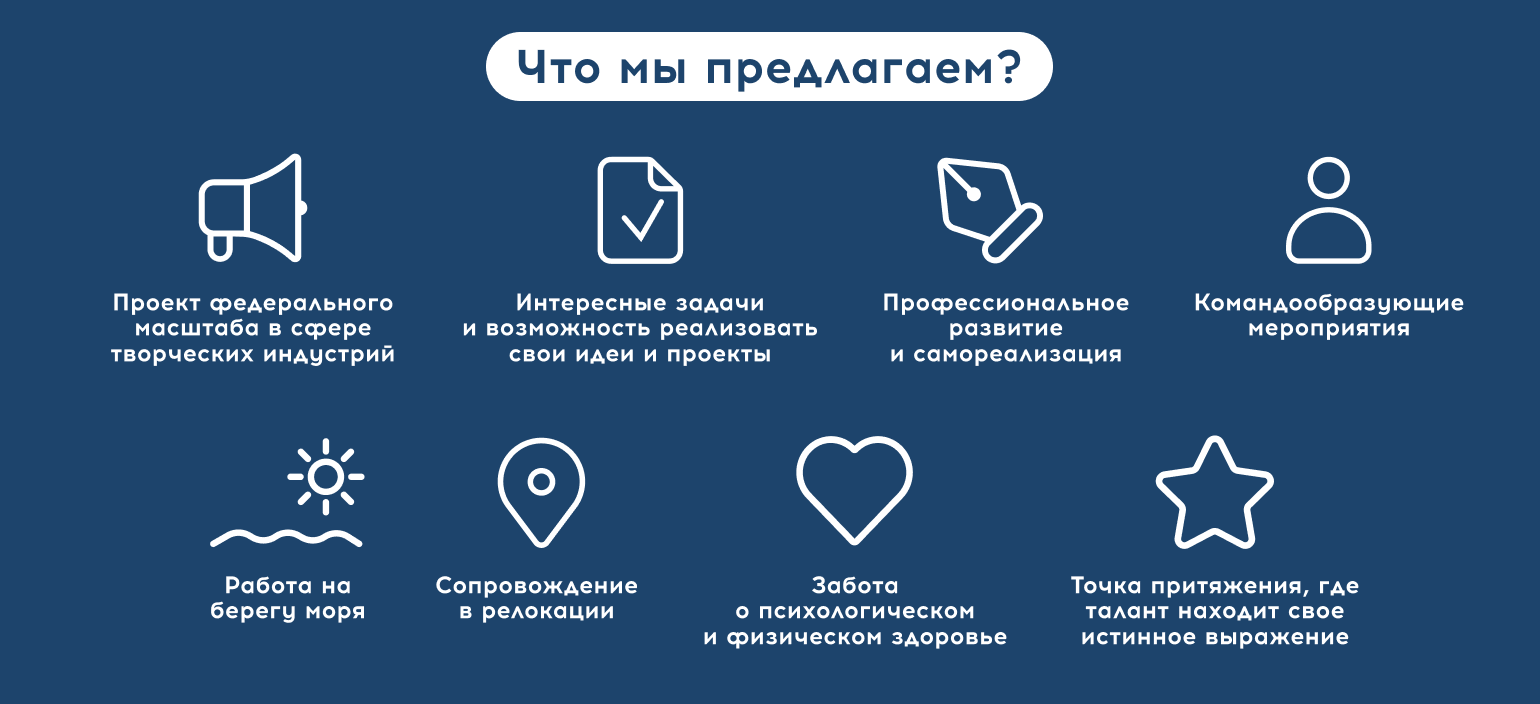 работа в современном офисе на территории Академии творческих индустрий «Меганом», Республика Крым, г. Судак, арт-кластер «Таврида.АРТ»;